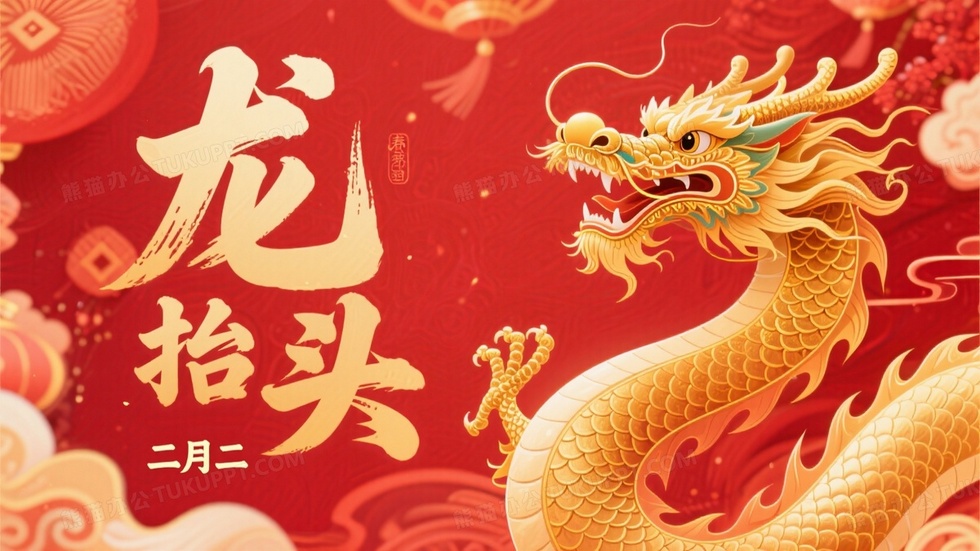 本作品内容为春节二月二龙抬头主题插画, 格式为 jpg, 大小1 MB, 图片尺寸为1664 x 936, 源文件无水印, 欢迎使用熊猫办公。 如认为平台内容涉嫌侵权,可通过邮件:tousu@tukuppt.com提出书面通知,我们将及时处理。