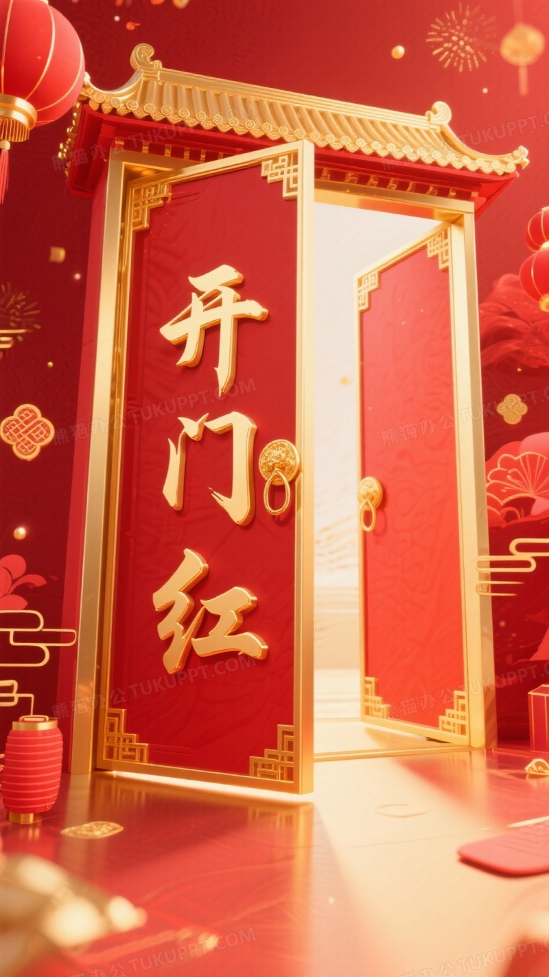 本作品内容为春节开门红主题插画巨大的红金色大门打开, 格式为 jpg, 大小1 MB, 图片尺寸为936 x 1664, 源文件无水印, 欢迎使用熊猫办公。 如认为平台内容涉嫌侵权,可通过邮件:tousu@tukuppt.com提出书面通知,我们将及时处理。