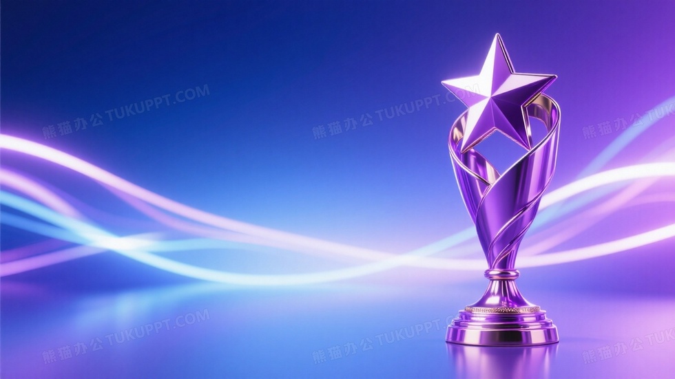 本作品内容为颁奖典礼主题右侧是带星星的紫色金属质感奖杯, 格式为 jpg, 大小1 MB, 图片尺寸为1664 x 936, 作品中背景图片无需修改, 源文件无水印,可以直接使用, 欢迎使用熊猫办公。 如认为平台内容涉嫌侵权,可通过邮件:tousu@tukuppt.com提出书面通知,我们将及时处理。