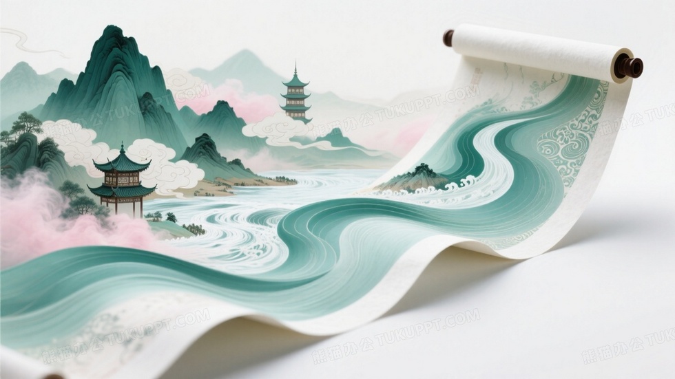 本作品内容为新中式绘画主色调青绿色由深到浅, 格式为 jpg, 大小1 MB, 图片尺寸为1664 x 936, 作品中背景图片无需修改, 源文件无水印,可以直接使用, 欢迎使用熊猫办公。 如认为平台内容涉嫌侵权,可通过邮件:tousu@tukuppt.com提出书面通知,我们将及时处理。