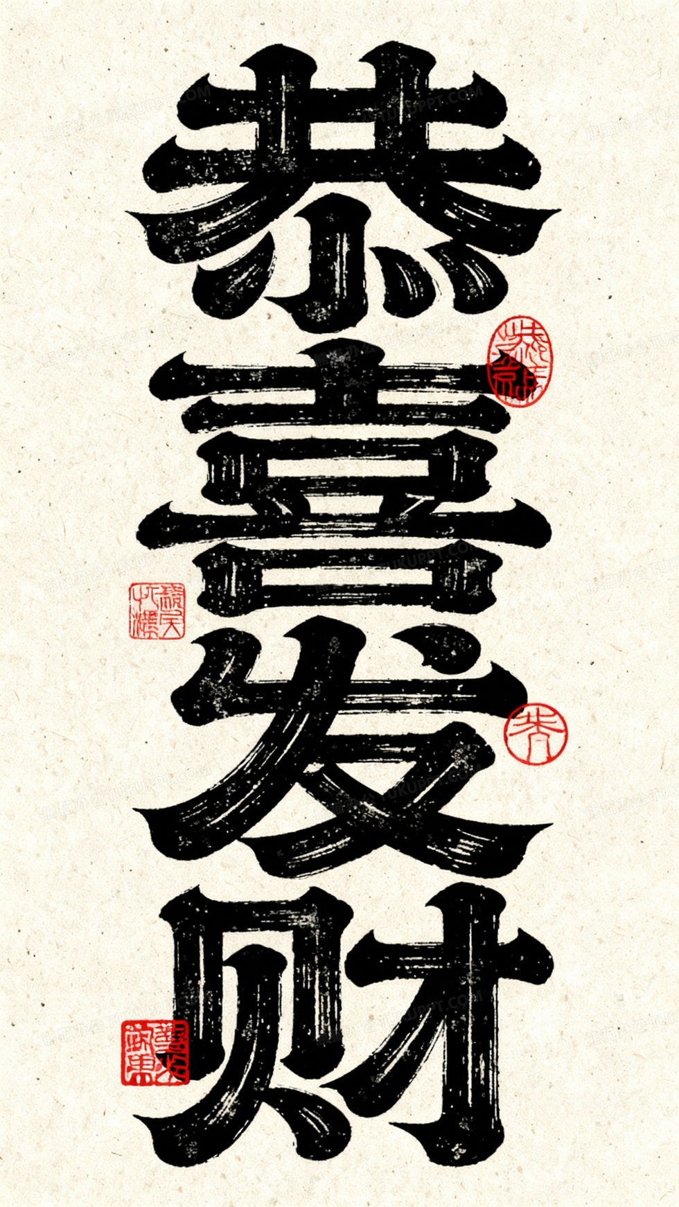 本作品内容为字体设计篆刻书法恭喜发财, 格式为 jpg, 大小2 MB, 图片尺寸为1440 x 2560, 源文件无水印, 欢迎使用熊猫办公。 如认为平台内容涉嫌侵权,可通过邮件:tousu@tukuppt.com提出书面通知,我们将及时处理。