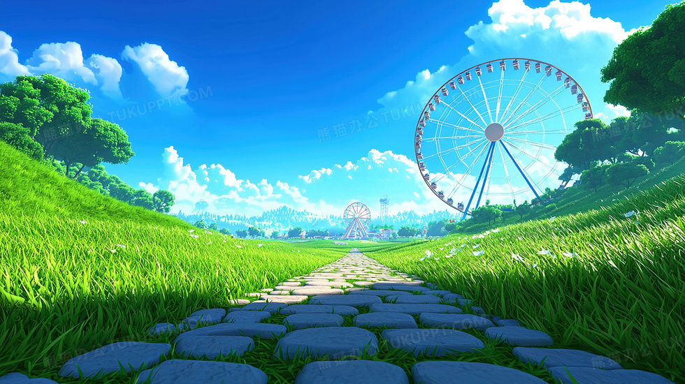 本作品内容为卡通春季摩天轮自然风景背景, 格式为 jpg, 大小4 MB, 图片尺寸为2912 x 1632, 作品中背景图片无需修改, 源文件无水印,可以直接使用, 欢迎使用熊猫办公。 如认为平台内容涉嫌侵权,可通过邮件:tousu@tukuppt.com提出书面通知,我们将及时处理。