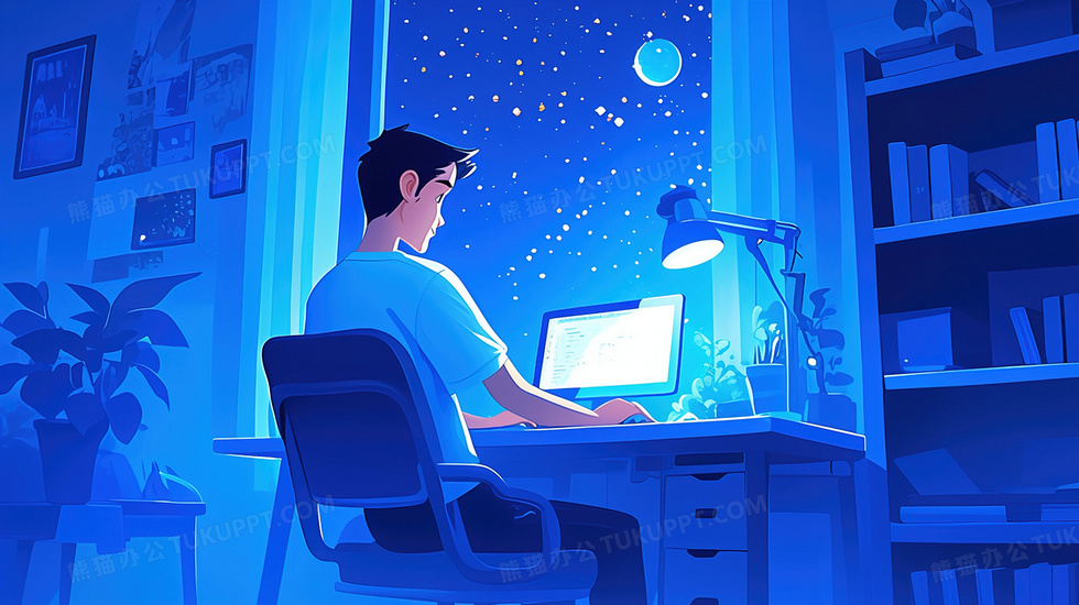 本作品内容为熬夜加班工作的打工人插画, 格式为 jpg, 大小2 MB, 图片尺寸为2912 x 1632, 源文件无水印, 欢迎使用熊猫办公。 如认为平台内容涉嫌侵权,可通过邮件:tousu@tukuppt.com提出书面通知,我们将及时处理。