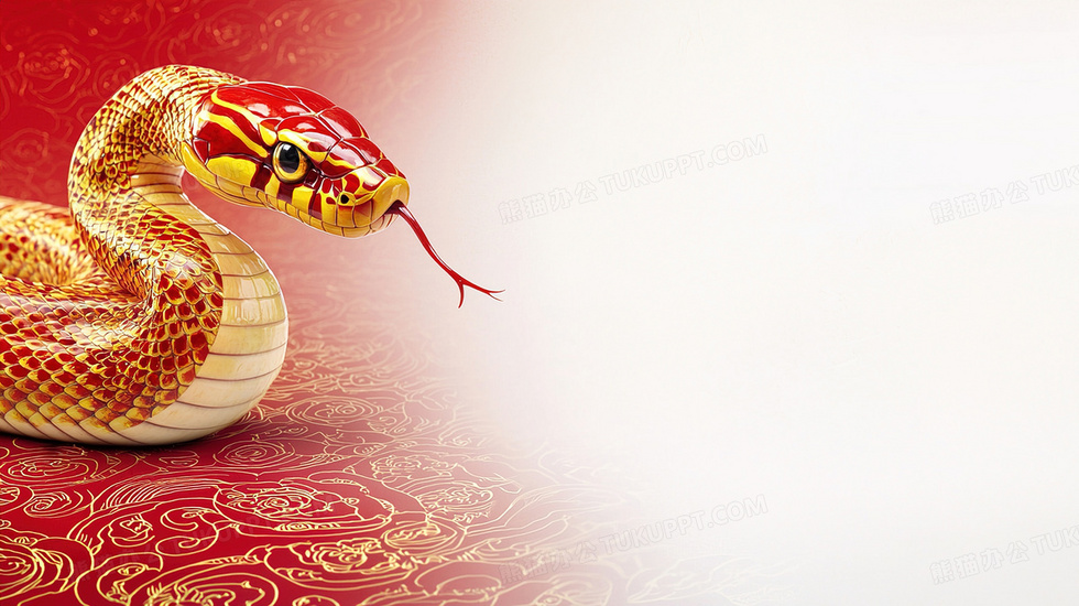 本作品内容为新年黄蛇头部特写背景, 格式为 jpg, 大小3 MB, 图片尺寸为2912 x 1632, 作品中背景图片无需修改, 源文件无水印,可以直接使用, 欢迎使用熊猫办公。 如认为平台内容涉嫌侵权,可通过邮件:tousu@tukuppt.com提出书面通知,我们将及时处理。