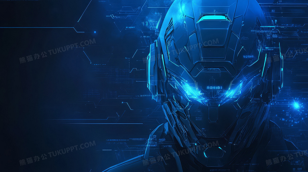 本作品内容为蓝色科技机器人背景, 格式为 jpg, 大小7 MB, 图片尺寸为2912 x 1632, 作品中背景图片无需修改, 源文件无水印,可以直接使用, 欢迎使用熊猫办公。 如认为平台内容涉嫌侵权,可通过邮件:tousu@tukuppt.com提出书面通知,我们将及时处理。