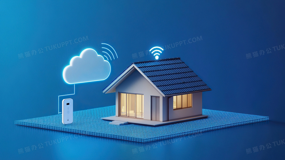 本作品内容为蓝色简约无线网络智能家居背景, 格式为 jpg, 大小4 MB, 图片尺寸为2912 x 1632, 作品中背景图片无需修改, 源文件无水印,可以直接使用, 欢迎使用熊猫办公。 如认为平台内容涉嫌侵权,可通过邮件:tousu@tukuppt.com提出书面通知,我们将及时处理。