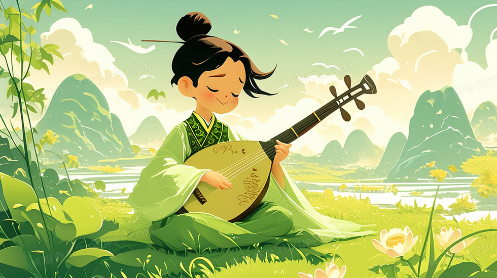 本作品内容为绿色草地弹拨乐器琵琶古风少年插画, 格式为 jpg, 大小3 MB, 图片尺寸为2912 x 1632, 源文件无水印, 欢迎使用熊猫办公。 如认为平台内容涉嫌侵权,可通过邮件:tousu@tukuppt.com提出书面通知,我们将及时处理。