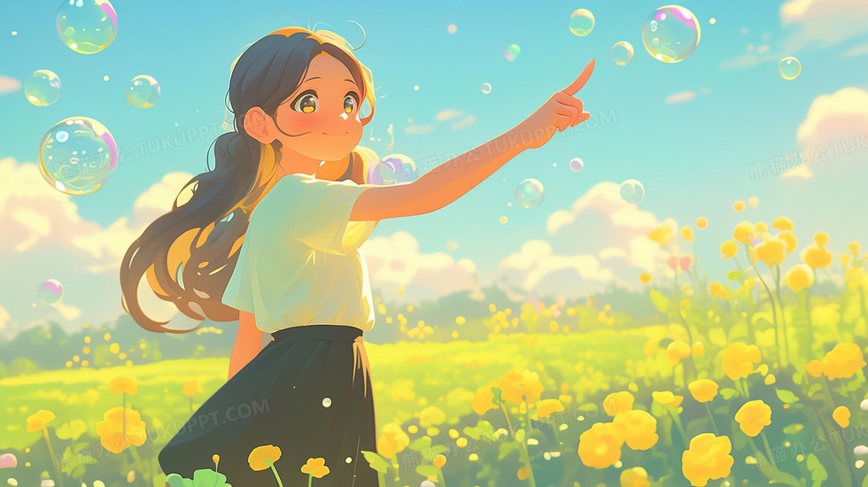 本作品内容为可爱少女在油菜花田玩水泡插画, 格式为 jpg, 大小2 MB, 图片尺寸为2912 x 1632, 源文件无水印, 欢迎使用熊猫办公。 如认为平台内容涉嫌侵权,可通过邮件:tousu@tukuppt.com提出书面通知,我们将及时处理。