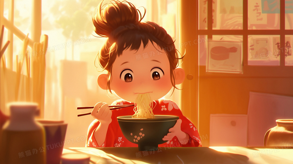 本作品内容为女孩午餐吃热乎乎的面条卡通插画, 格式为 jpg, 大小2 MB, 图片尺寸为2912 x 1632, 源文件无水印, 欢迎使用熊猫办公。 如认为平台内容涉嫌侵权,可通过邮件:tousu@tukuppt.com提出书面通知,我们将及时处理。