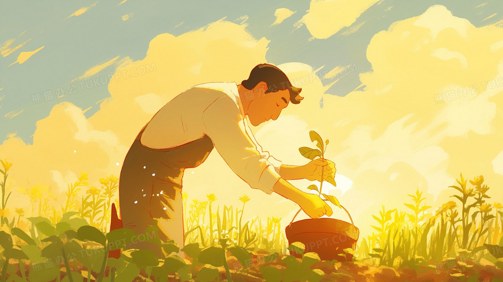 本作品内容为青年园艺师在花园种花卡通插画, 格式为 jpg, 大小2 MB, 图片尺寸为2912 x 1632, 源文件无水印, 欢迎使用熊猫办公。 如认为平台内容涉嫌侵权,可通过邮件:tousu@tukuppt.com提出书面通知,我们将及时处理。