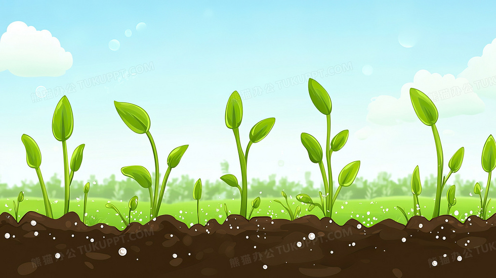 本作品内容为卡通风春天嫩芽背景, 格式为 jpg, 大小2 MB, 图片尺寸为2912 x 1632, 作品中背景图片无需修改, 源文件无水印,可以直接使用, 欢迎使用熊猫办公。 如认为平台内容涉嫌侵权,可通过邮件:tousu@tukuppt.com提出书面通知,我们将及时处理。