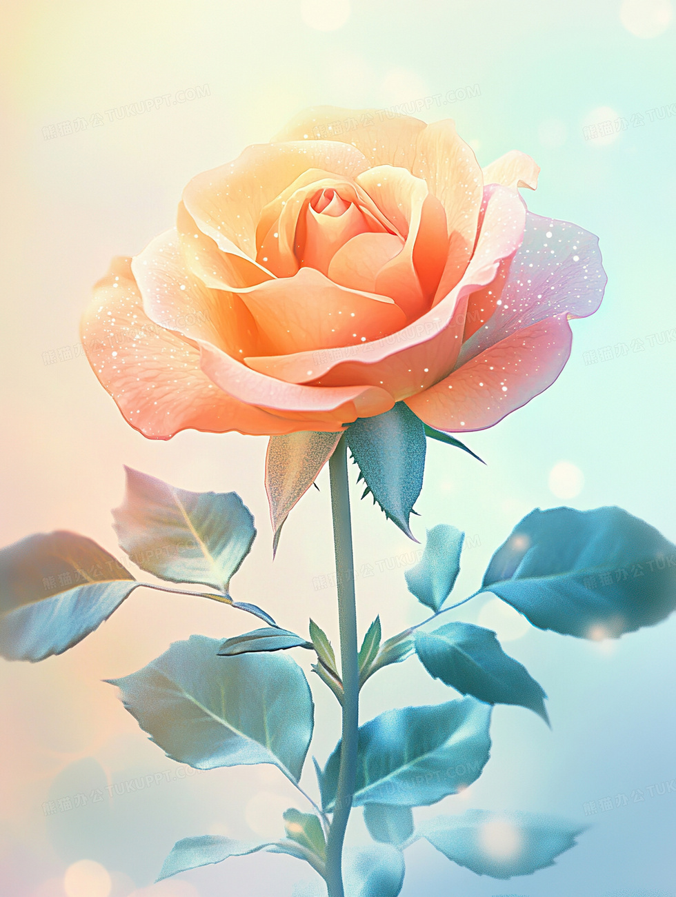 本作品内容为闪着亮粉的橙粉色玫瑰花插画, 格式为 jpg, 大小3 MB, 图片尺寸为1856 x 2464, 源文件无水印, 欢迎使用熊猫办公。 如认为平台内容涉嫌侵权,可通过邮件:tousu@tukuppt.com提出书面通知,我们将及时处理。
