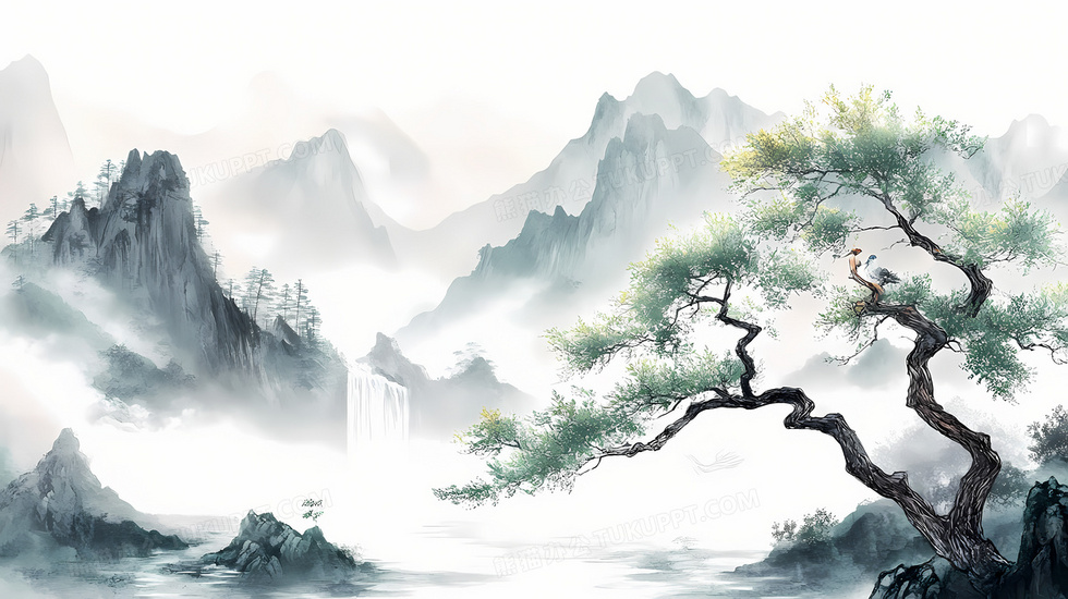 本作品内容为中式山林松柏风景插画, 格式为 jpg, 大小5 MB, 图片尺寸为2912 x 1632, 源文件无水印, 欢迎使用熊猫办公。 如认为平台内容涉嫌侵权,可通过邮件:tousu@tukuppt.com提出书面通知,我们将及时处理。
