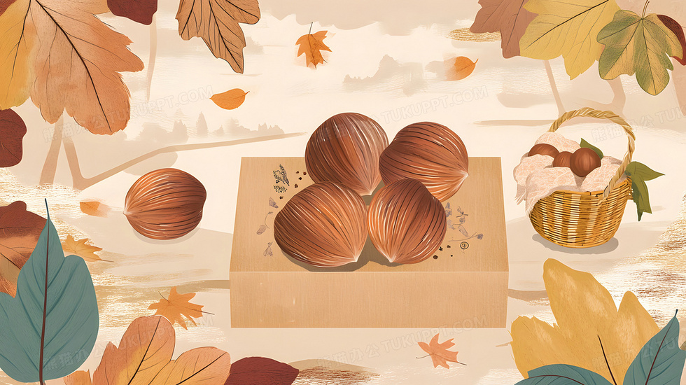 本作品内容为卡通风格农业农产品板栗栗子插画, 格式为 jpg, 大小3 MB, 图片尺寸为2912 x 1632, 源文件无水印, 欢迎使用熊猫办公。 如认为平台内容涉嫌侵权,可通过邮件:tousu@tukuppt.com提出书面通知,我们将及时处理。
