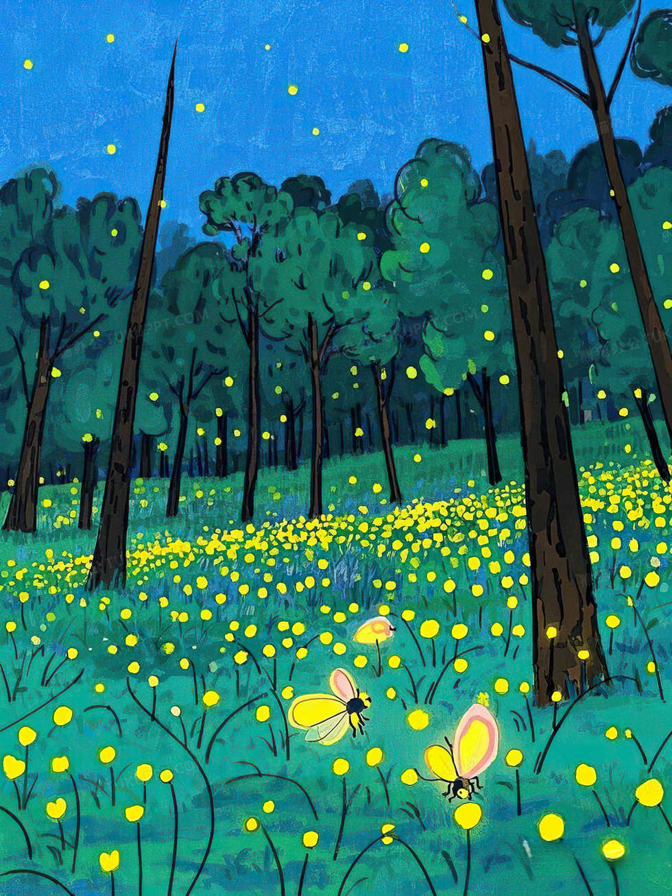 本作品内容为夏天萤火虫在森林空地的夜空中闪烁插画, 格式为 jpg, 大小7 MB, 图片尺寸为1536 x 2048, 源文件无水印, 欢迎使用熊猫办公。 如认为平台内容涉嫌侵权,可通过邮件:tousu@tukuppt.com提出书面通知,我们将及时处理。