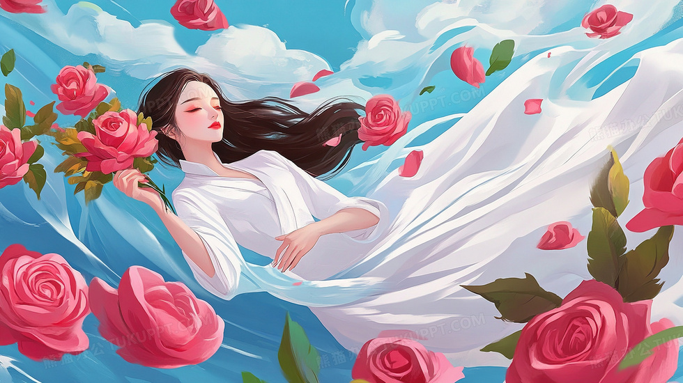 本作品内容为创意躺在鲜花丛中美丽的卡通女性插画, 格式为 jpg, 大小3 MB, 图片尺寸为2912 x 1632, 源文件无水印, 欢迎使用熊猫办公。 如认为平台内容涉嫌侵权,可通过邮件:tousu@tukuppt.com提出书面通知,我们将及时处理。