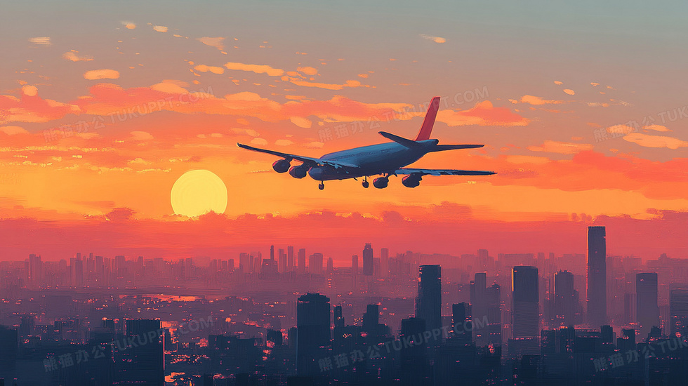 本作品内容为飞机夕阳落日晚霞风景背景, 格式为 jpg, 大小3 MB, 图片尺寸为2912 x 1632, 作品中背景图片无需修改, 源文件无水印,可以直接使用, 欢迎使用熊猫办公。 如认为平台内容涉嫌侵权,可通过邮件:tousu@tukuppt.com提出书面通知,我们将及时处理。
