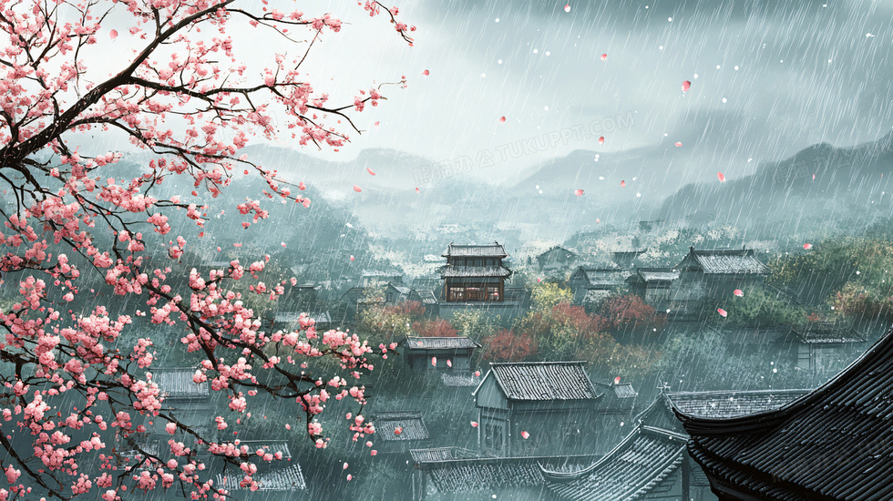 本作品内容为下雨天中国风乡村小镇风景插画, 格式为 jpg, 大小8 MB, 图片尺寸为2912 x 1632, 源文件无水印, 欢迎使用熊猫办公。 如认为平台内容涉嫌侵权,可通过邮件:tousu@tukuppt.com提出书面通知,我们将及时处理。