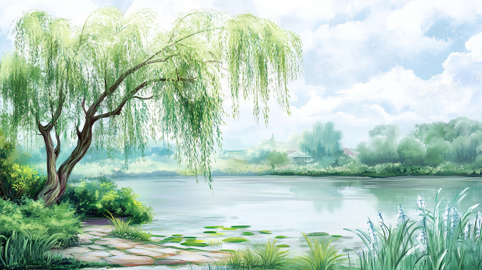 本作品内容为水彩花卉户外湖面上美丽的杨柳树插画, 格式为 jpg, 大小4 MB, 图片尺寸为2912 x 1632, 源文件无水印, 欢迎使用熊猫办公。 如认为平台内容涉嫌侵权,可通过邮件:tousu@tukuppt.com提出书面通知,我们将及时处理。