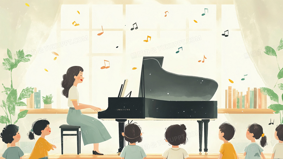 本作品内容为钢琴老师给学生上音乐课插画, 格式为 jpg, 大小4 MB, 图片尺寸为2912 x 1632, 源文件无水印, 欢迎使用熊猫办公。 如认为平台内容涉嫌侵权,可通过邮件:tousu@tukuppt.com提出书面通知,我们将及时处理。