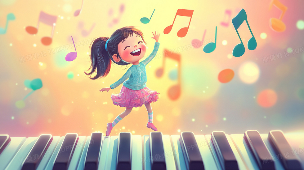 本作品内容为钢琴键上跳舞的小女孩卡通插画, 格式为 jpg, 大小3 MB, 图片尺寸为2912 x 1632, 源文件无水印, 欢迎使用熊猫办公。 如认为平台内容涉嫌侵权,可通过邮件:tousu@tukuppt.com提出书面通知,我们将及时处理。