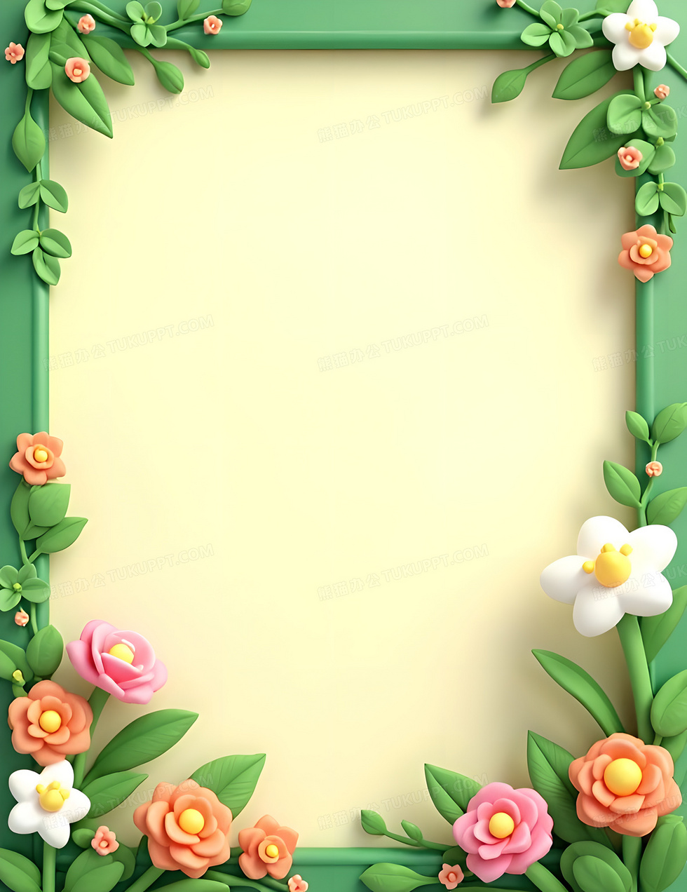 本作品内容为美丽清新可爱的鲜花边框背景, 格式为 jpg, 大小6 MB, 图片尺寸为2368 x 3072, 作品中背景图片无需修改, 源文件无水印,可以直接使用, 欢迎使用熊猫办公。 如认为平台内容涉嫌侵权,可通过邮件:tousu@tukuppt.com提出书面通知,我们将及时处理。