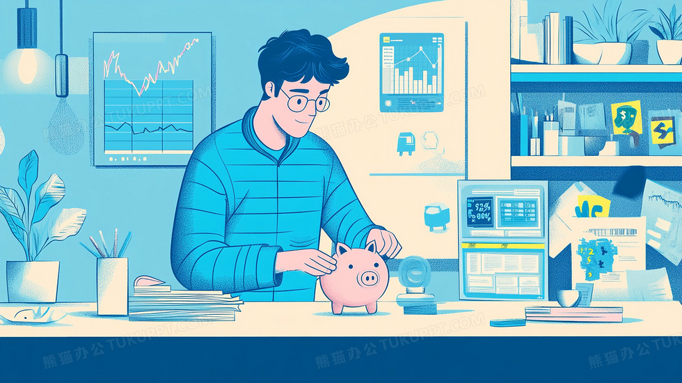 本作品内容为男子在金融小猪里面存钱的卡通插画, 格式为 jpg, 大小3 MB, 图片尺寸为2912 x 1632, 源文件无水印, 欢迎使用熊猫办公。 如认为平台内容涉嫌侵权,可通过邮件:tousu@tukuppt.com提出书面通知,我们将及时处理。