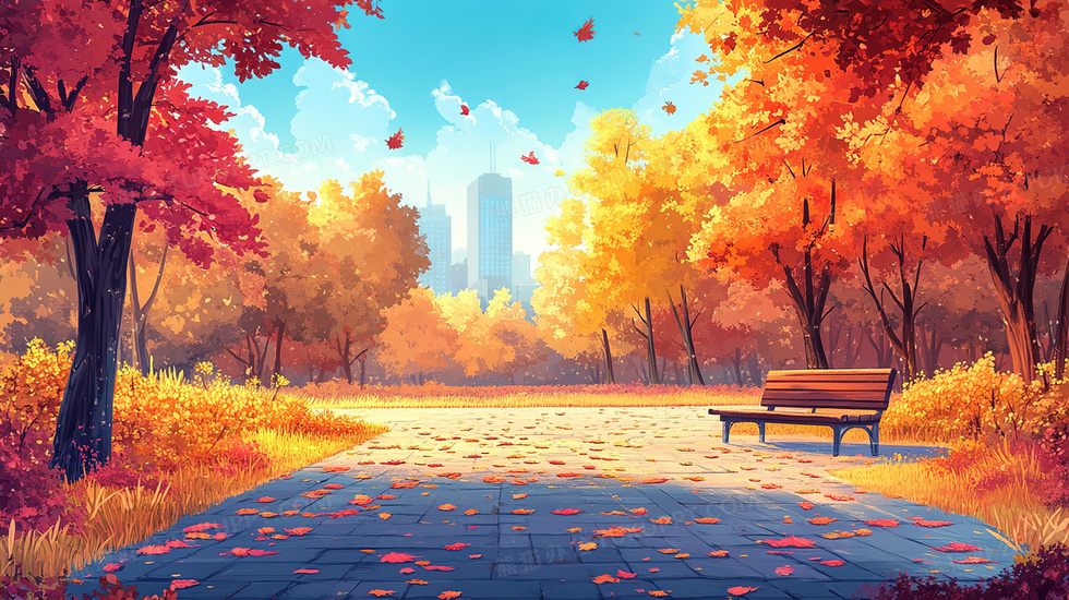 本作品内容为秋天户外美丽的公园场景插画, 格式为 jpg, 大小4 MB, 图片尺寸为2912 x 1632, 源文件无水印, 欢迎使用熊猫办公。 如认为平台内容涉嫌侵权,可通过邮件:tousu@tukuppt.com提出书面通知,我们将及时处理。