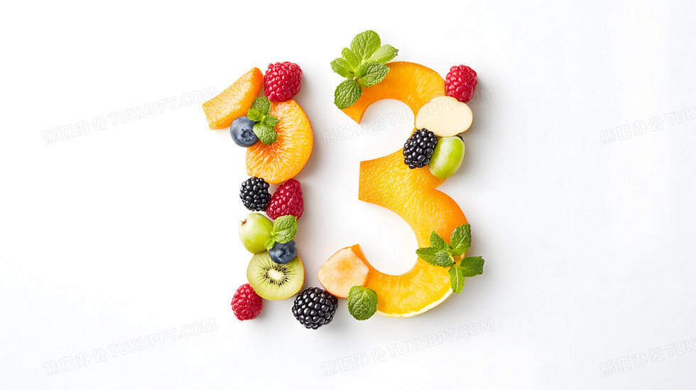 本作品内容为创意可爱的3D水果数字13背景, 格式为 jpg, 大小1 MB, 图片尺寸为2912 x 1632, 作品中背景图片无需修改, 源文件无水印,可以直接使用, 欢迎使用熊猫办公。 如认为平台内容涉嫌侵权,可通过邮件:tousu@tukuppt.com提出书面通知,我们将及时处理。
