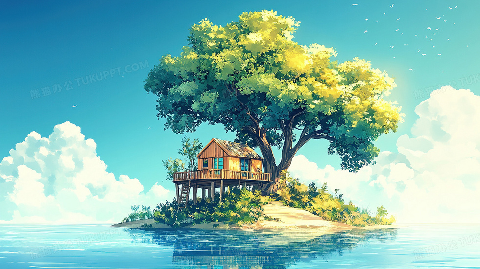 本作品内容为海岛木屋唯美壁纸风景插画, 格式为 jpg, 大小4 MB, 图片尺寸为2912 x 1632, 源文件无水印, 欢迎使用熊猫办公。 如认为平台内容涉嫌侵权,可通过邮件:tousu@tukuppt.com提出书面通知,我们将及时处理。