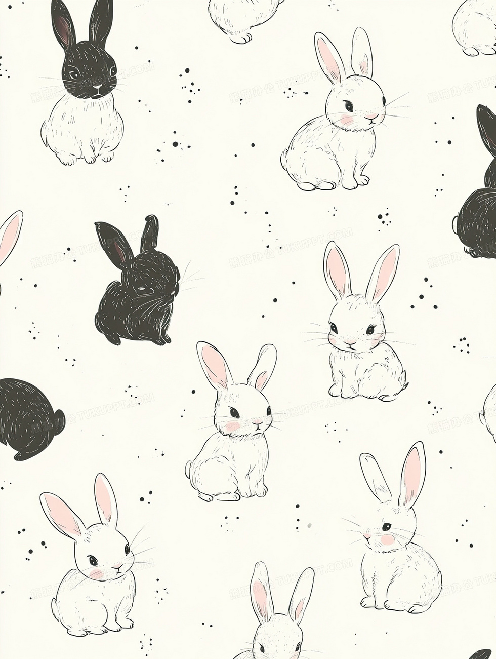 本作品内容为小兔子平铺印花背景, 格式为 jpg, 大小2 MB, 图片尺寸为1856 x 2464, 作品中背景图片无需修改, 源文件无水印,可以直接使用, 欢迎使用熊猫办公。 如认为平台内容涉嫌侵权,可通过邮件:tousu@tukuppt.com提出书面通知,我们将及时处理。