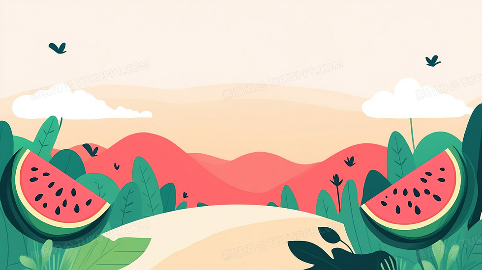 本作品内容为西瓜植物卡通水果简约背景, 格式为 jpg, 大小2 MB, 图片尺寸为2912 x 1632, 作品中背景图片无需修改, 源文件无水印,可以直接使用, 欢迎使用熊猫办公。 如认为平台内容涉嫌侵权,可通过邮件:tousu@tukuppt.com提出书面通知,我们将及时处理。