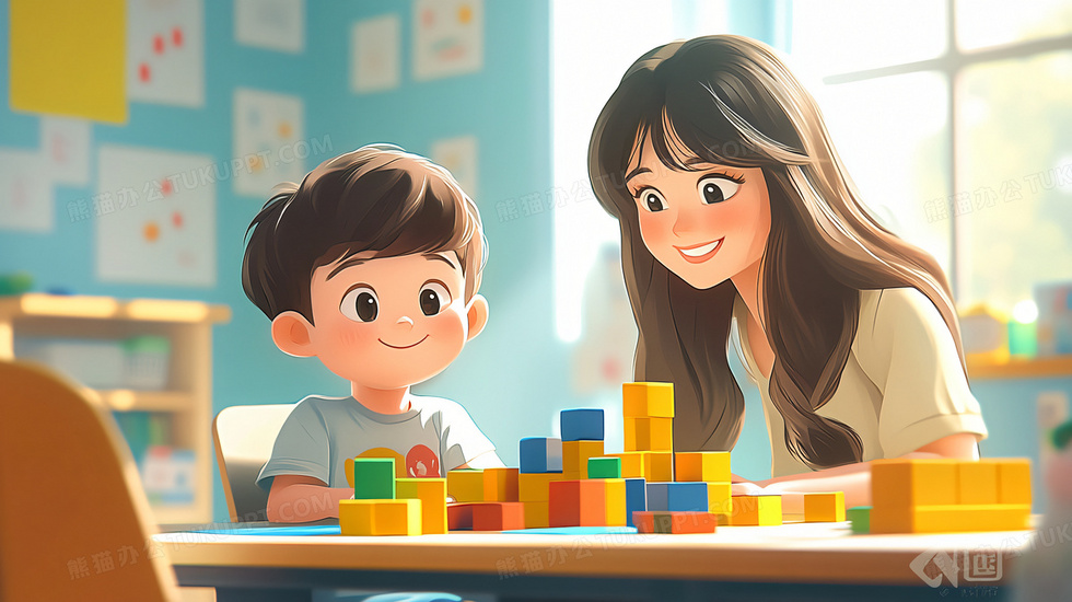 本作品内容为家长陪伴孩子的温馨插画, 格式为 jpg, 大小5 MB, 图片尺寸为2912 x 1632, 源文件无水印, 欢迎使用熊猫办公。 如认为平台内容涉嫌侵权,可通过邮件:tousu@tukuppt.com提出书面通知,我们将及时处理。