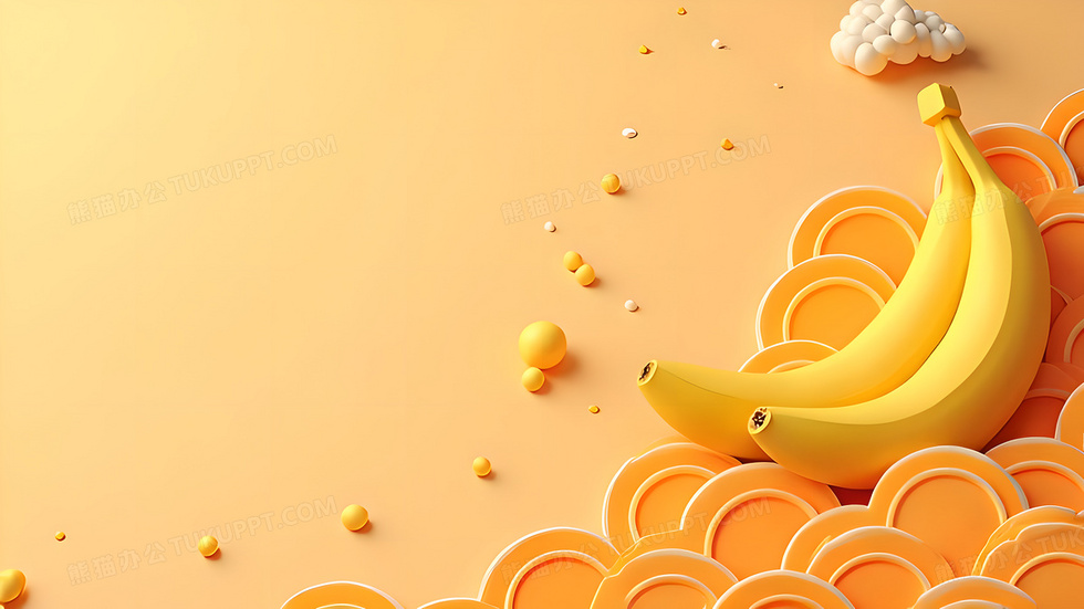 本作品内容为古风水果香蕉黄底3D立体背景, 格式为 jpg, 大小4 MB, 图片尺寸为3072 x 1728, 作品中背景图片无需修改, 源文件无水印,可以直接使用, 欢迎使用熊猫办公。 如认为平台内容涉嫌侵权,可通过邮件:tousu@tukuppt.com提出书面通知,我们将及时处理。