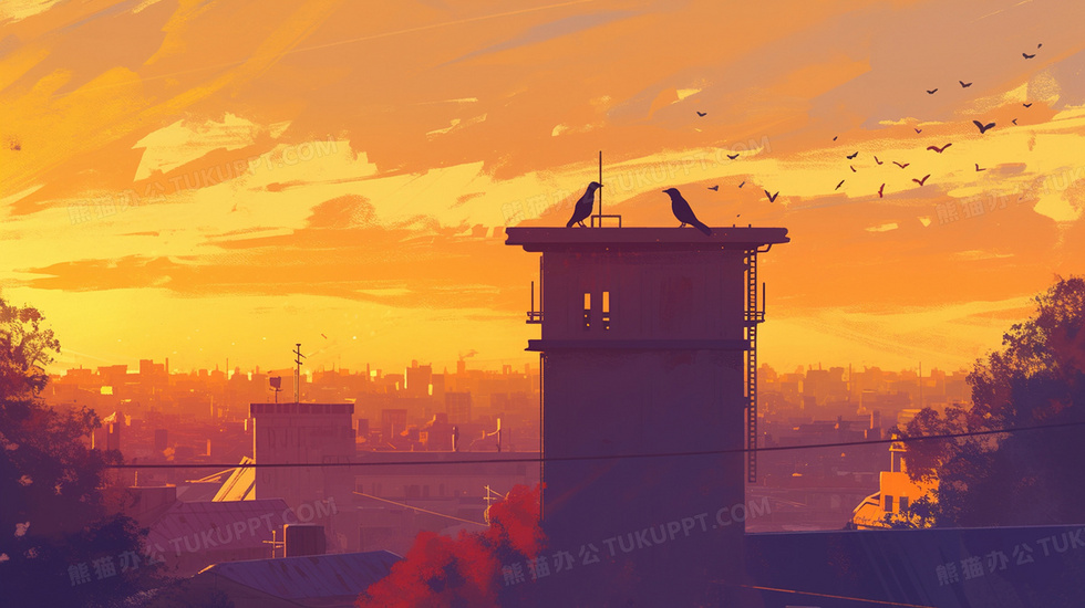 本作品内容为黄昏落日下的城市建筑美景插画, 格式为 jpg, 大小3 MB, 图片尺寸为2912 x 1632, 源文件无水印, 欢迎使用熊猫办公。 如认为平台内容涉嫌侵权,可通过邮件:tousu@tukuppt.com提出书面通知,我们将及时处理。