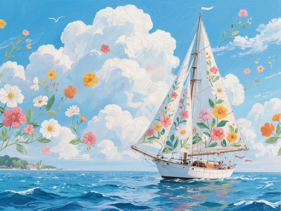 本作品内容为以帆船为主题画一副富有花朵云朵海洋的作品, 格式为 jpg, 大小1 MB, 图片尺寸为1472 x 1104, 源文件无水印, 欢迎使用熊猫办公。 如认为平台内容涉嫌侵权,可通过邮件:tousu@tukuppt.com提出书面通知,我们将及时处理。
