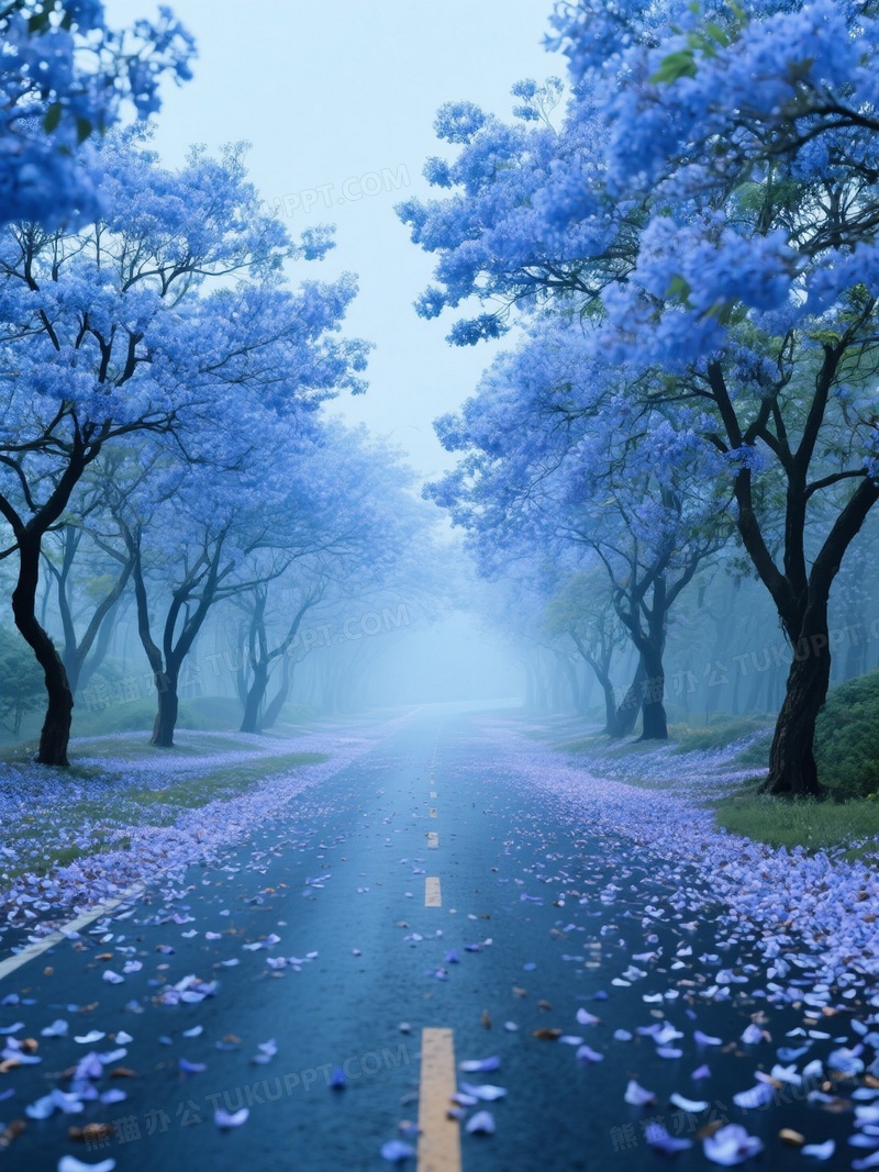 本作品内容为一条平坦宽阔公路两旁是开满蓝色花的树, 格式为 jpg, 大小1 MB, 图片尺寸为1104 x 1472, 源文件无水印, 欢迎使用熊猫办公。 如认为平台内容涉嫌侵权,可通过邮件:tousu@tukuppt.com提出书面通知,我们将及时处理。