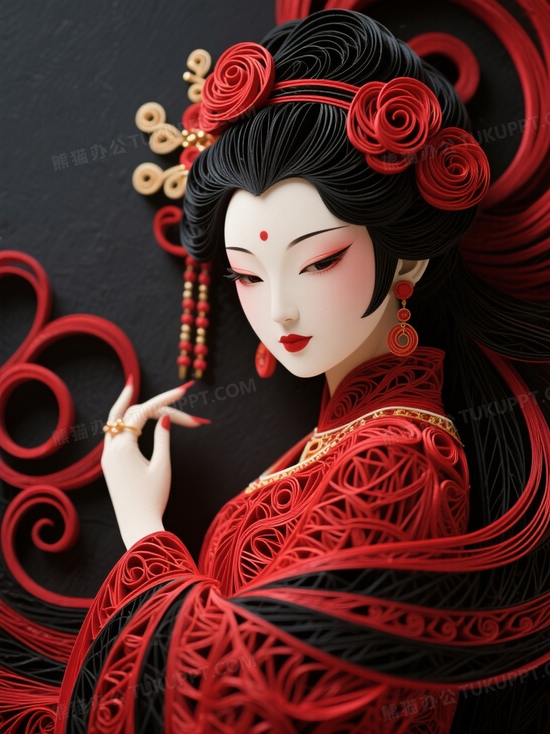 本作品内容为衍纸艺术妩媚风图国风, 格式为 jpg, 大小1 MB, 图片尺寸为1104 x 1472, 源文件无水印, 欢迎使用熊猫办公。 如认为平台内容涉嫌侵权,可通过邮件:tousu@tukuppt.com提出书面通知,我们将及时处理。