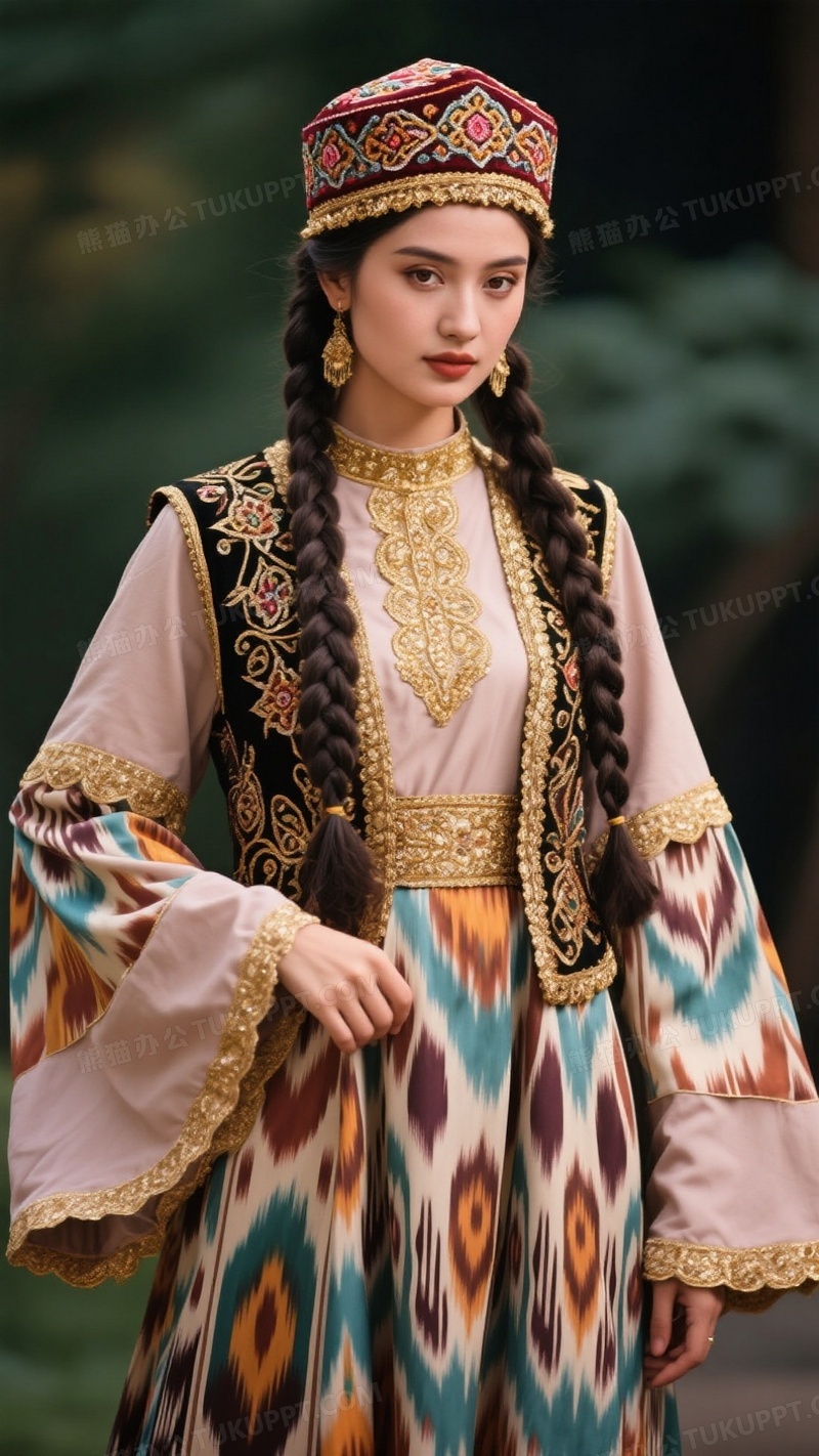 本作品内容为艾德莱斯绸晕染多辫绣花帽, 格式为 jpg, 大小1 MB, 图片尺寸为936 x 1664, 源文件无水印, 欢迎使用熊猫办公。 如认为平台内容涉嫌侵权,可通过邮件:tousu@tukuppt.com提出书面通知,我们将及时处理。
