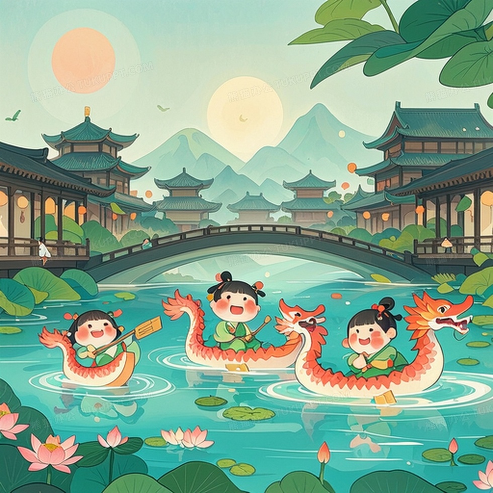 本作品内容为端午节龙舟几个穿着汉服的可爱小孩在划龙舟, 格式为 jpg, 大小1 MB, 图片尺寸为2048 x 2048, 作品中背景图片无需修改, 源文件无水印,可以直接使用, 欢迎使用熊猫办公。 如认为平台内容涉嫌侵权,可通过邮件:tousu@tukuppt.com提出书面通知,我们将及时处理。