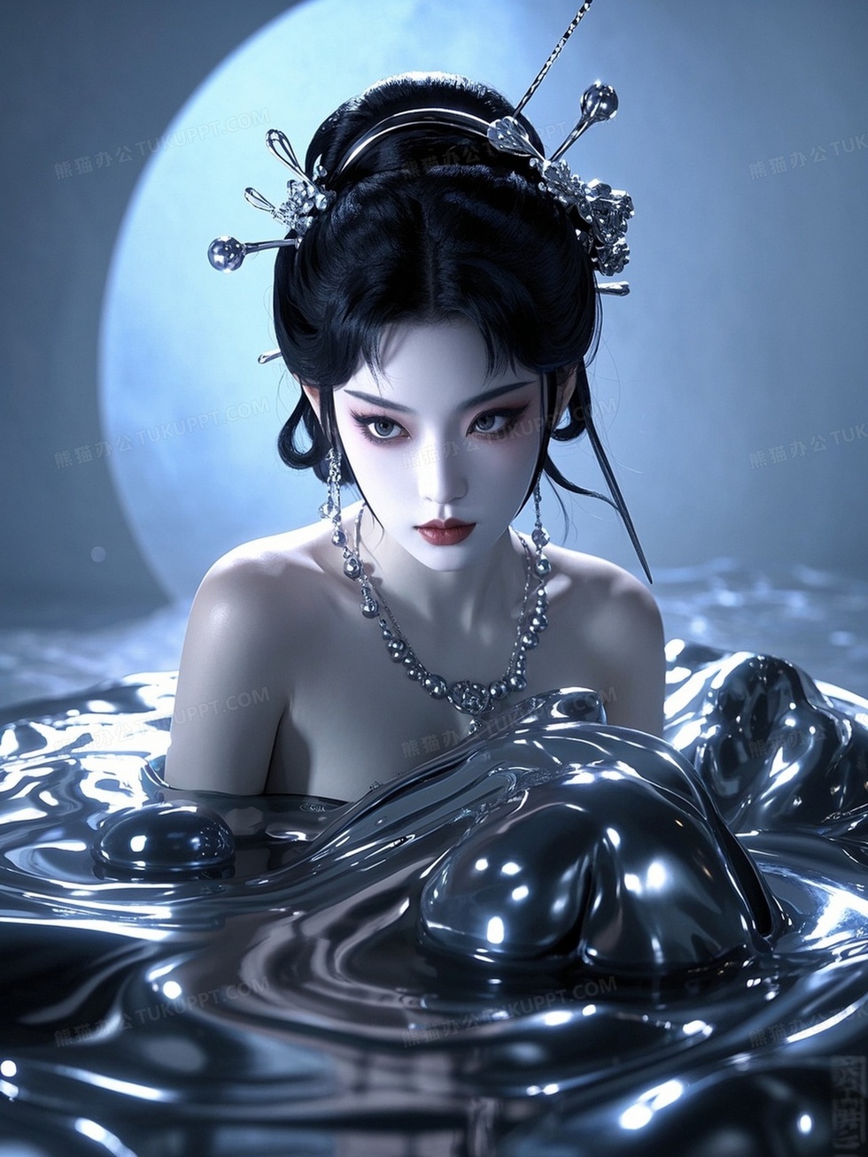 本作品内容为超现实人像绘画戏曲国风, 格式为 jpg, 大小1 MB, 图片尺寸为1536 x 2048, 作品中背景图片无需修改, 源文件无水印,可以直接使用, 欢迎使用熊猫办公。 如认为平台内容涉嫌侵权,可通过邮件:tousu@tukuppt.com提出书面通知,我们将及时处理。