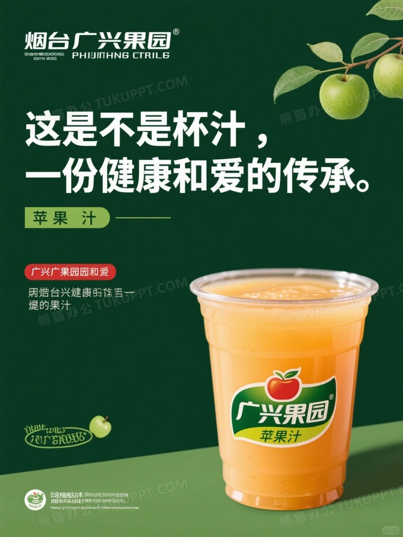 本作品内容为这张广兴果园苹果汁的宣传海报, 格式为 jpg, 大小1 MB, 图片尺寸为1104 x 1472, 源文件无水印, 欢迎使用熊猫办公。 如认为平台内容涉嫌侵权,可通过邮件:tousu@tukuppt.com提出书面通知,我们将及时处理。