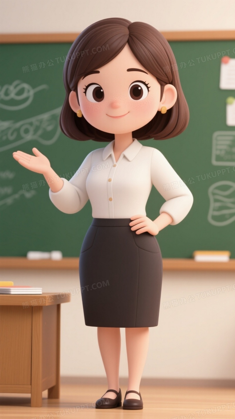 本作品内容为生成一个女教师形象的卡通图片, 格式为 jpg, 大小1 MB, 图片尺寸为936 x 1664, 源文件无水印, 欢迎使用熊猫办公。 如认为平台内容涉嫌侵权,可通过邮件:tousu@tukuppt.com提出书面通知,我们将及时处理。