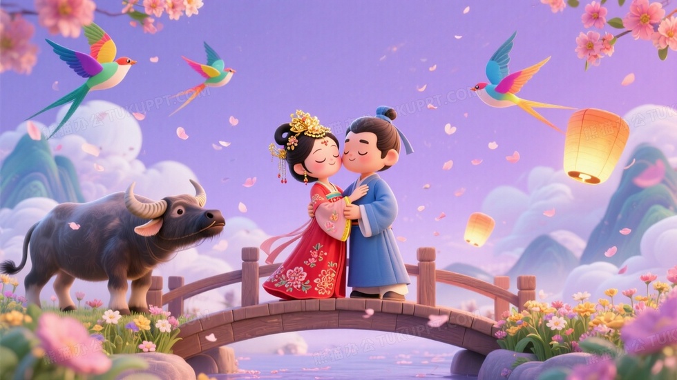 本作品内容为中国七夕节主题可爱Q版3D风格插画, 格式为 jpg, 大小1 MB, 图片尺寸为1664 x 936, 源文件无水印, 欢迎使用熊猫办公。 如认为平台内容涉嫌侵权,可通过邮件:tousu@tukuppt.com提出书面通知,我们将及时处理。