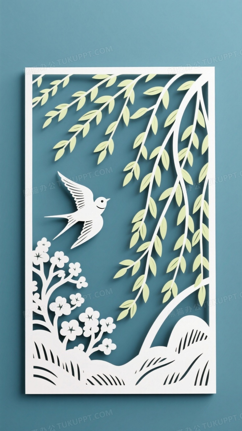 本作品内容为剪纸图案春天来了燕子飞向被风吹拂的柳枝, 格式为 jpg, 大小1 MB, 图片尺寸为936 x 1664, 源文件无水印, 欢迎使用熊猫办公。 如认为平台内容涉嫌侵权,可通过邮件:tousu@tukuppt.com提出书面通知,我们将及时处理。