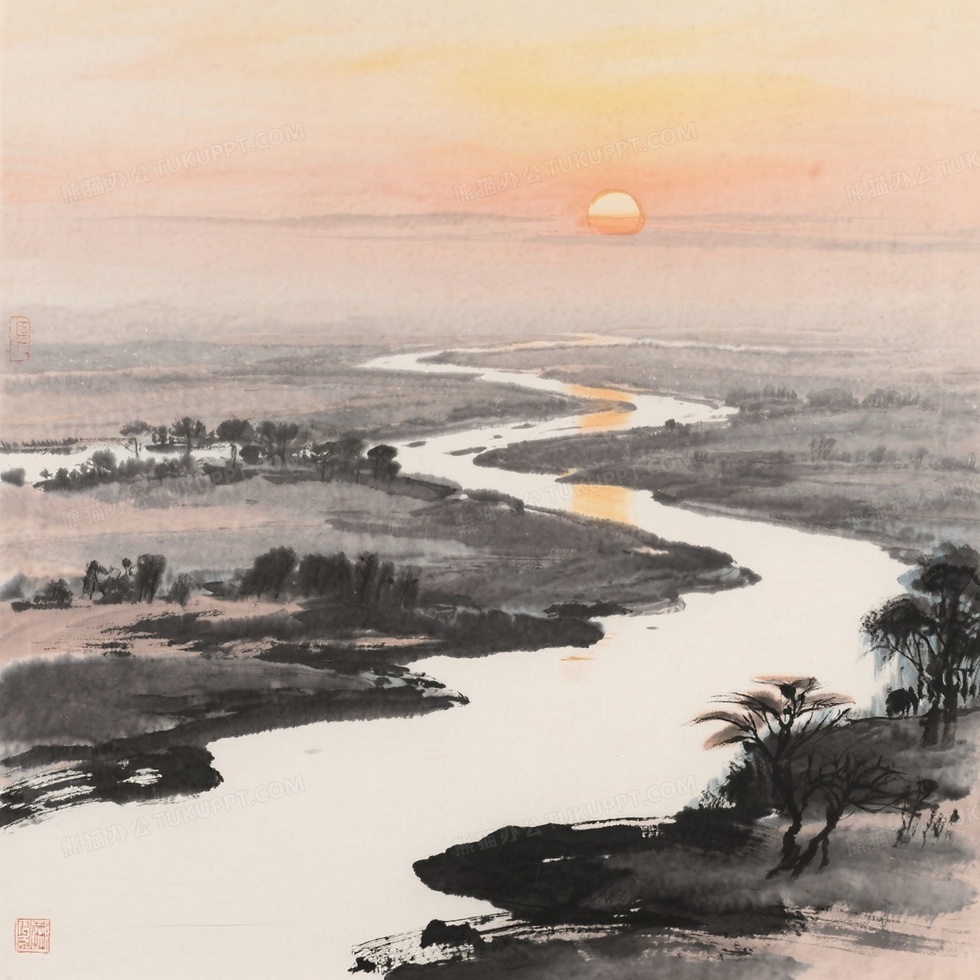本作品内容为长河落日圆水墨画, 格式为 jpg, 大小1 MB, 图片尺寸为1328 x 1328, 源文件无水印, 欢迎使用熊猫办公。 如认为平台内容涉嫌侵权,可通过邮件:tousu@tukuppt.com提出书面通知,我们将及时处理。