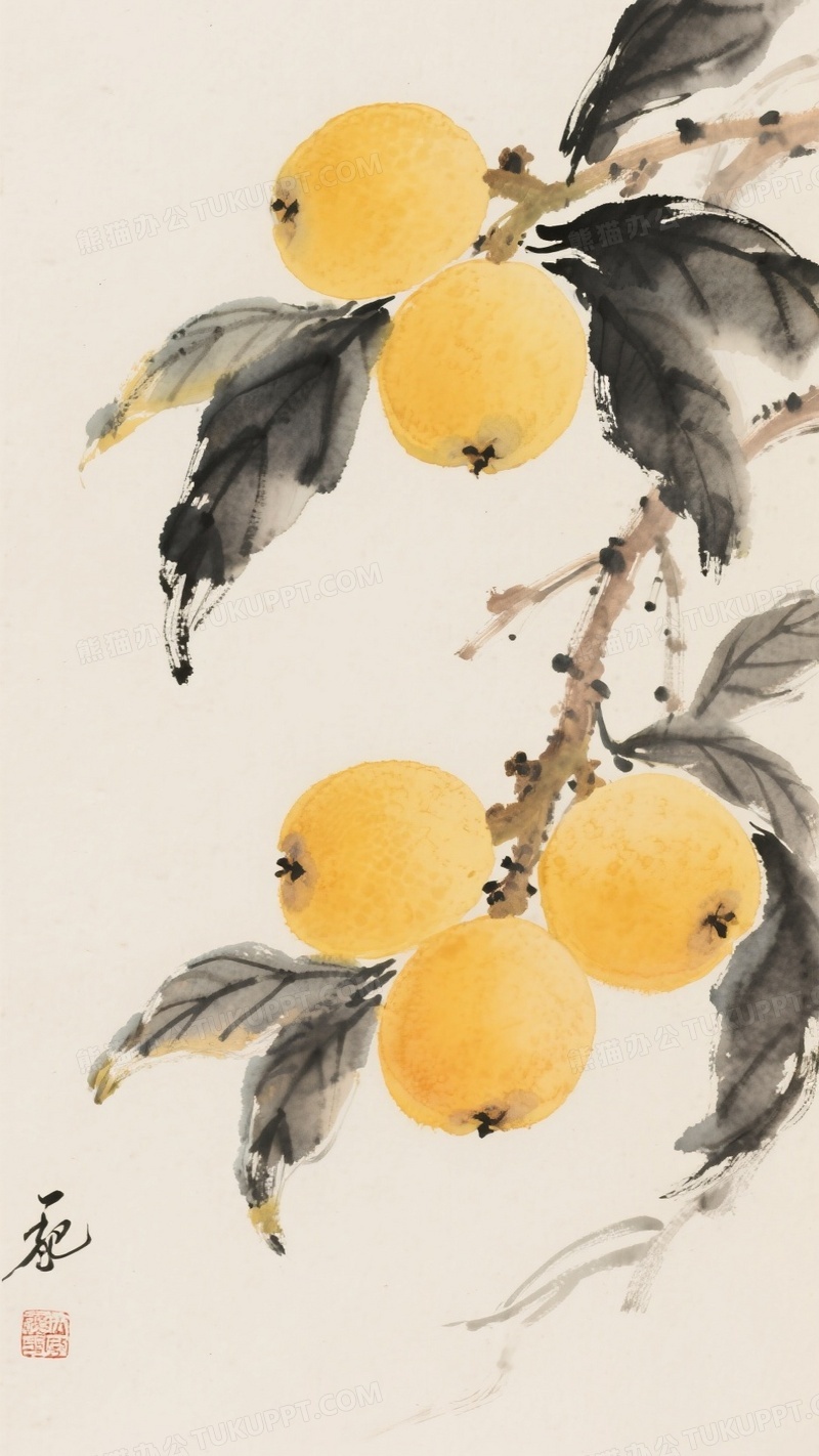 本作品内容为金黄的枇杷水墨与水彩在宣纸上撞出温柔涟漪, 格式为 jpg, 大小1 MB, 图片尺寸为936 x 1664, 源文件无水印, 欢迎使用熊猫办公。 如认为平台内容涉嫌侵权,可通过邮件:tousu@tukuppt.com提出书面通知,我们将及时处理。
