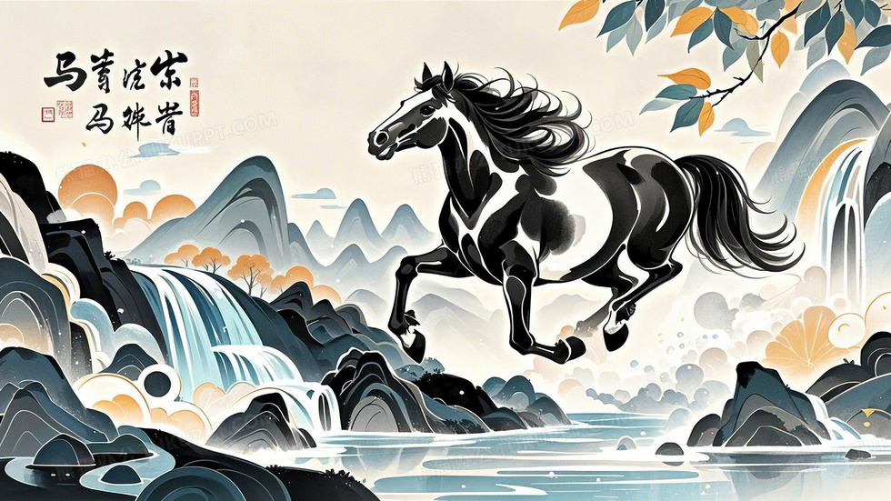 本作品内容为中国风水墨画山水骏马插画, 格式为 jpg, 大小5 MB, 图片尺寸为3072 x 1728, 源文件无水印, 欢迎使用熊猫办公。 如认为平台内容涉嫌侵权,可通过邮件:tousu@tukuppt.com提出书面通知,我们将及时处理。