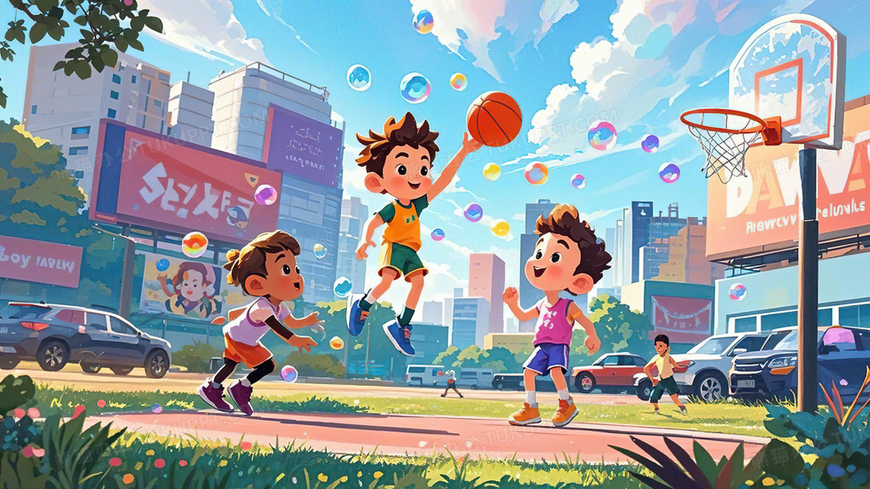 首页 > 插画 > 科技艺术 > 卡通漫画 > 小孩打篮球运动健身锻炼身体插画