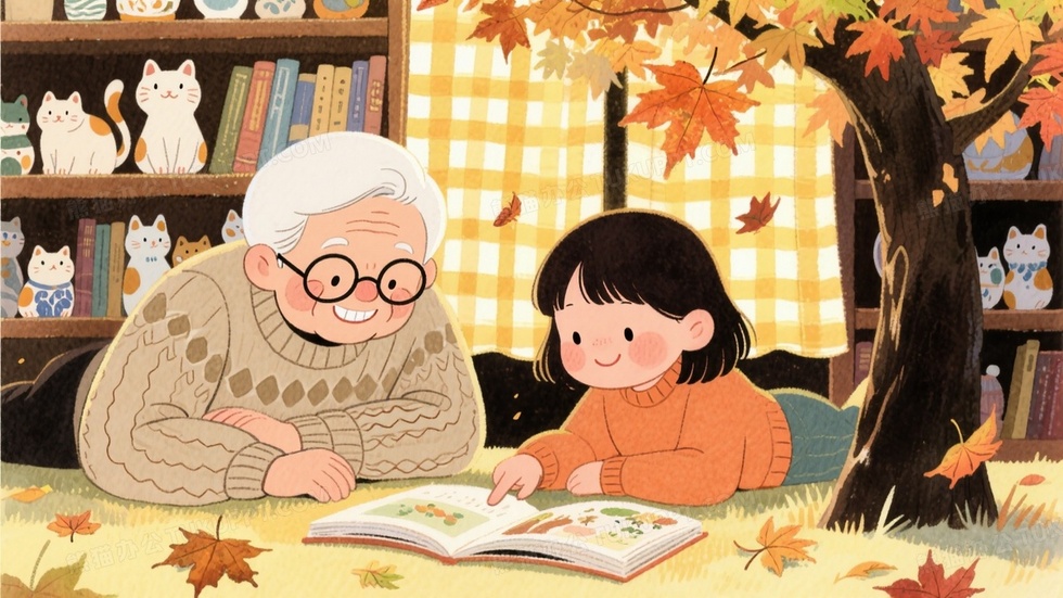 本作品内容为卡通插画描绘白发老人与孙女在枫树下读绘本, 格式为 jpg, 大小1 MB, 图片尺寸为1664 x 936, 源文件无水印, 欢迎使用熊猫办公。 如认为平台内容涉嫌侵权,可通过邮件:tousu@tukuppt.com提出书面通知,我们将及时处理。